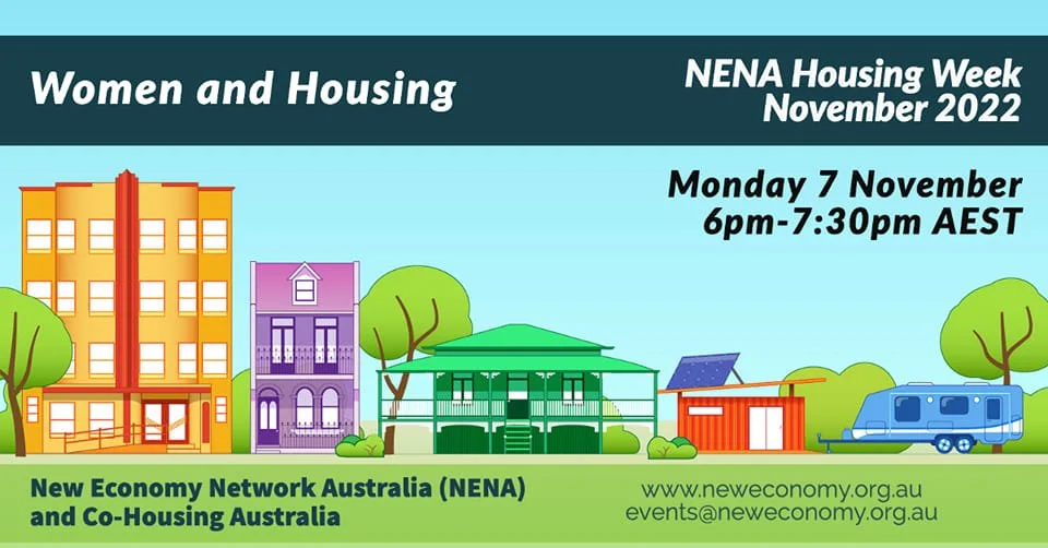 Australian women are facing housing insecurity in record numbers. Poverty is central to housing stress and precarity, and research shows that family breakdown, unemployment, chronic illness and disability disproportionately affect women’s economic circumstances. New Economy Network Australia, in partnership with Co-Housing Australia, is hosting NENA Housing Week on 7-11 November 2022 to explore these and other issues related to the availability, affordability, design and sustainability of Australia's housing and human settlements. Here, in the lead-up to that event, Myfan Jordan (@myfan_jordan) discusses patterns of disadvantage in relation to women and housing, and policy solutions. This article was originally published in the New Economy Network Australia Journal.